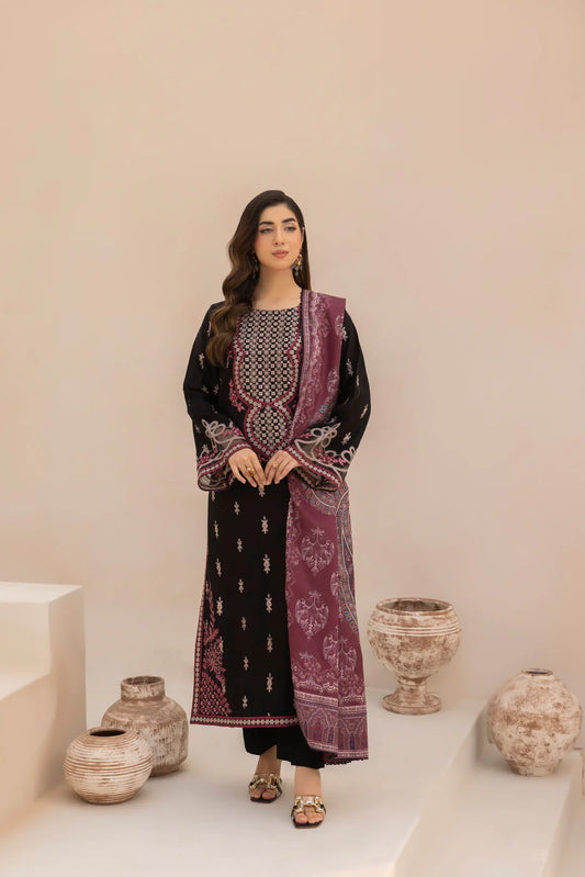 JAZMIN - 3PC DHANAK EMBROIDERED SHIRT WITH PRINTED TWILL SHAWL AND TROUSER -KPR798