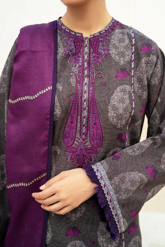 JAZMIN - 3PC DHANAK EMBROIDERED SHIRT WITH PRINTED TWILL SHAWL AND TROUSER -KPR798
