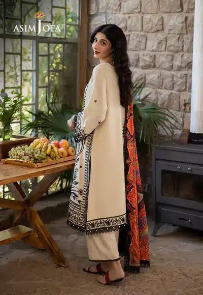 JAZMIN - 3PC DHANAK EMBROIDERED SHIRT WITH PRINTED TWILL SHAWL AND TROUSER -KPR798